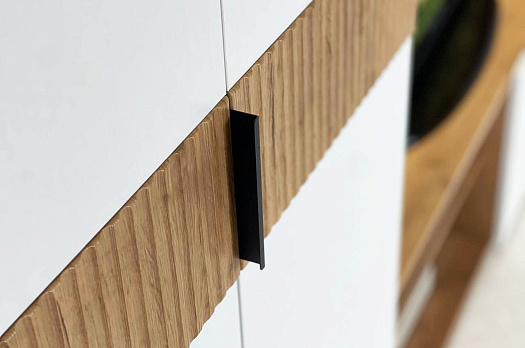 Гостиная "Бери"- это закрытые и открытые секции, место для ТВ с диагональю до 55 дюймов и декоративными полками для ценных и важных мелочей.