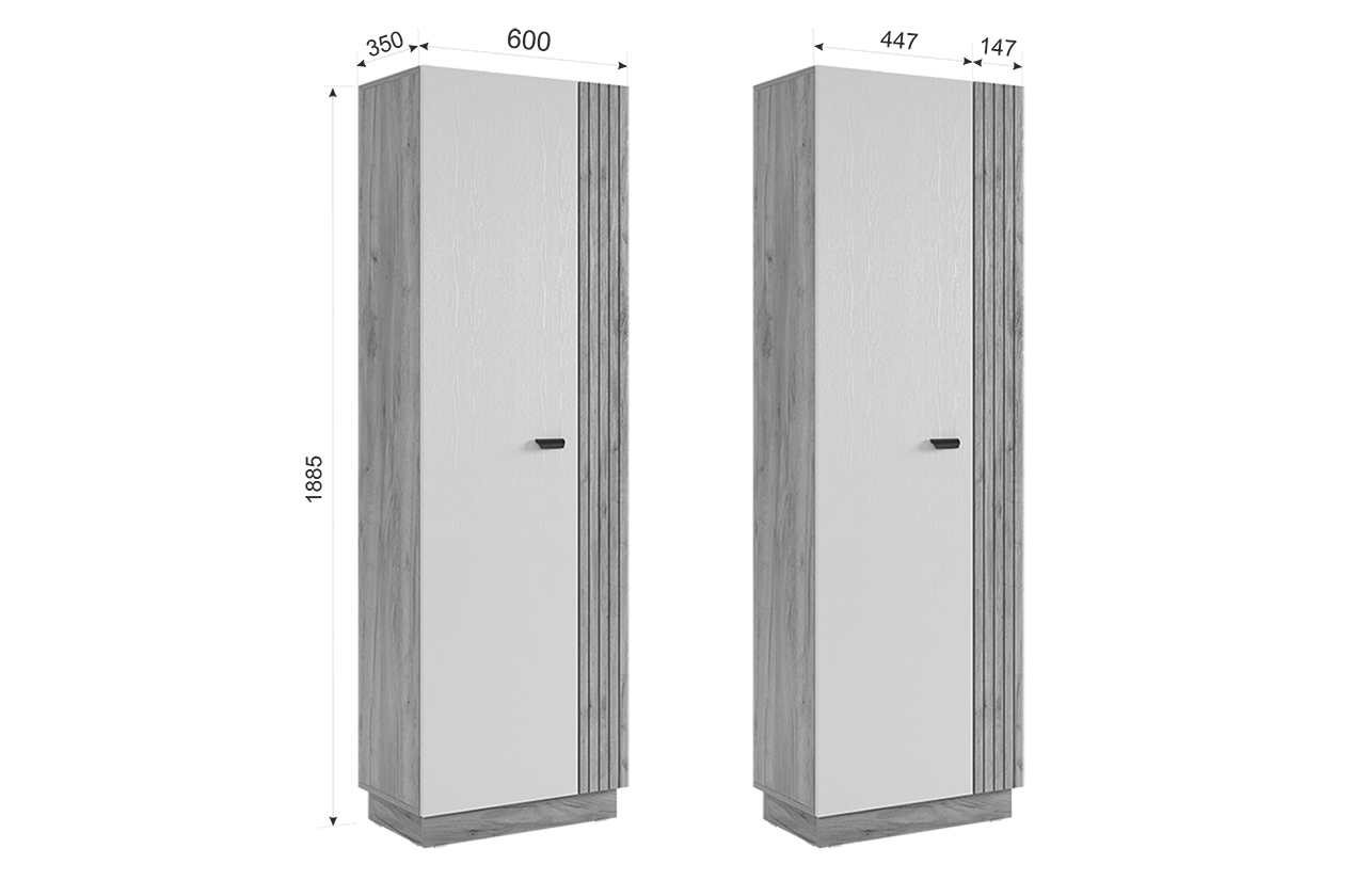 Состоит из: шкафа с 2-мя дверцами, 2-мя стационарными полками, 2-мя съемными полками и одной выдвижной штангой для одежды.