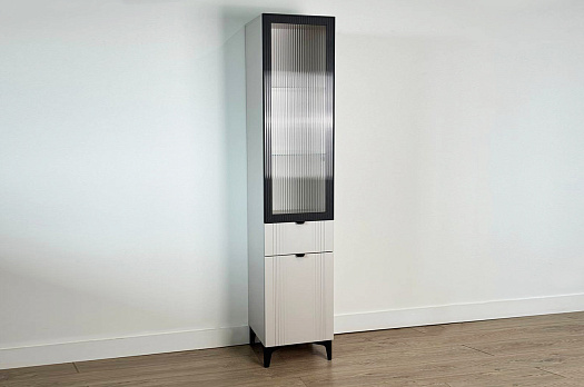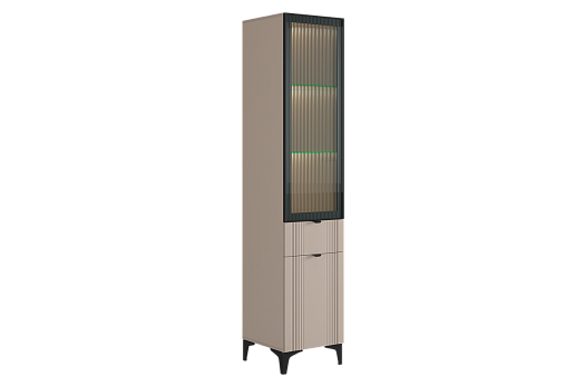 Рич Шкаф однодверный (со стеклом) кашемир/фрапучино матовый/черный из каталога Модульные гостиные купить в Уфе в магазине мебели онлайн Мебельсон по цене 22 690 ₽