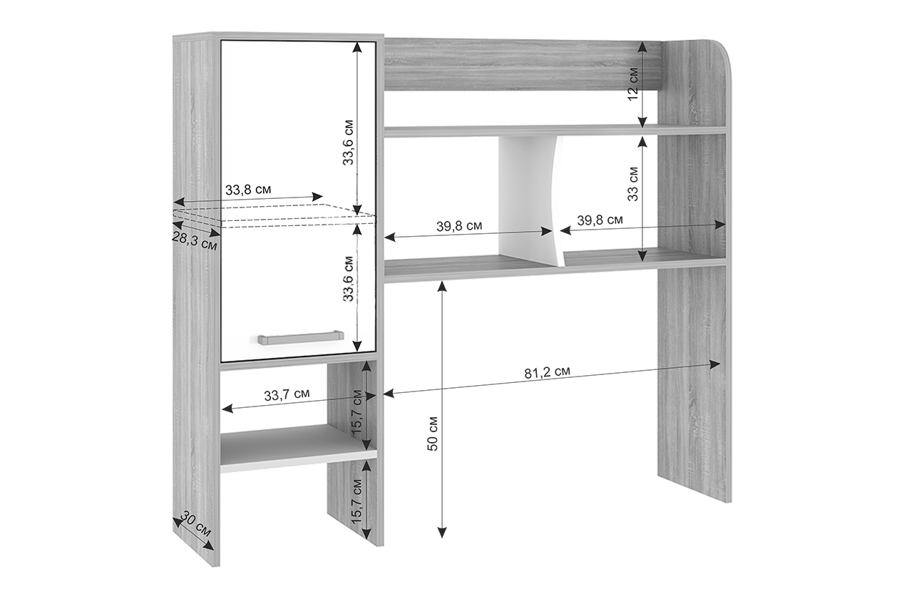 Надстройка для компьютерного стола Лайт-1: Отличное дополнение к вашему рабочему месту, идеально сочетается с компьютерными столами Лайт-1 и Лайт-2, обеспечивая дополнительное пространство для хранения и организации рабочих материалов.