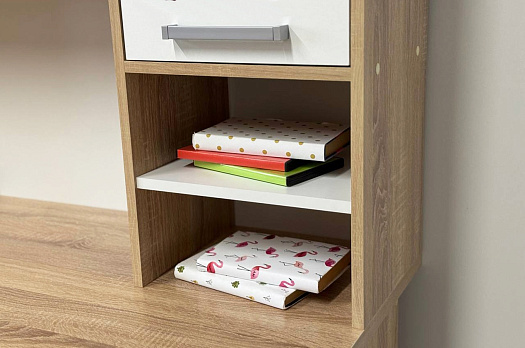 Данная надстройка оборудована вместительными полками, предназначенными для хранения книг, учебников, папок и другой необходимой документации. Также на этих полках можно разместить офисную технику, такую как сканер или принтер.