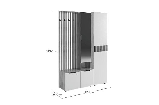 Прихожая "Бери К2" (1200х350х1826) дуб крафт золотой/белое дерево из каталога Модульные прихожие купить в Уфе в магазине мебели онлайн Мебельсон по цене 30 080 ₽