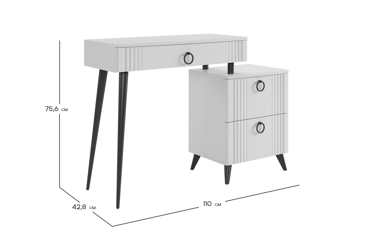 Ева Туалетный столик (без зеркала) белое дерево/белый матовый из каталога Трюмо купить в Уфе в магазине мебели онлайн Мебельсон по цене 11 890 ₽
