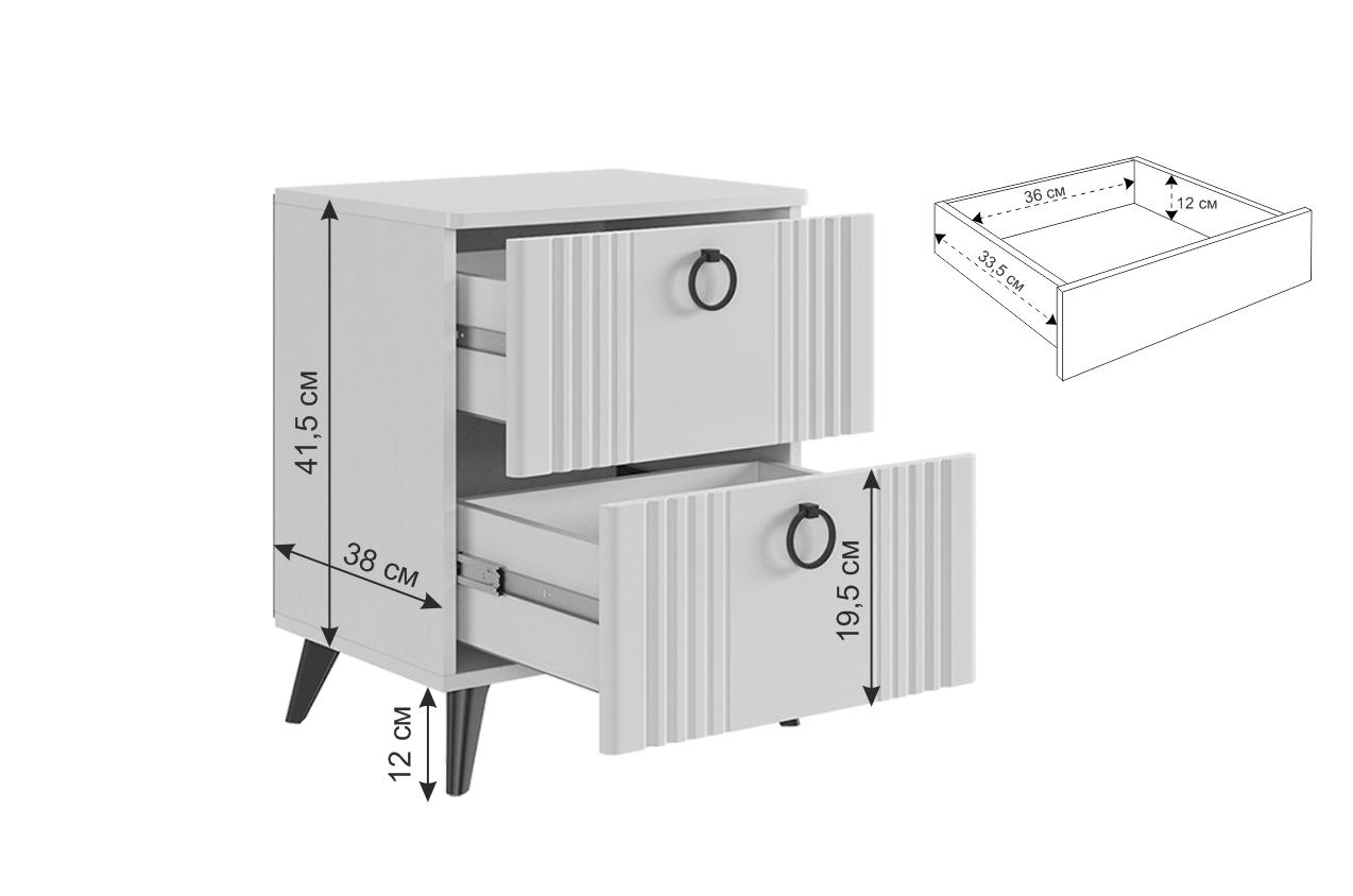 Тумба прикроватная с двумя шуфлядками, комплект Ева купить в Уфе