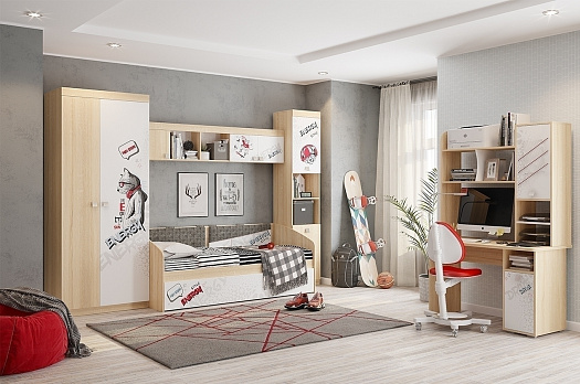 Эта кровать станет ярким элементом интерьера в комнате вашего ребенка. Просторный ящик для хранения белья также может служить дополнительным спальным местом. Мягкие накладки на спинке добавляют уют и комфорт.