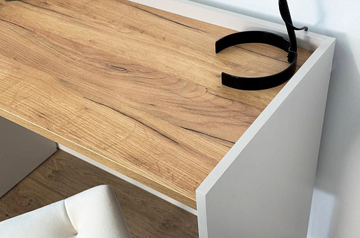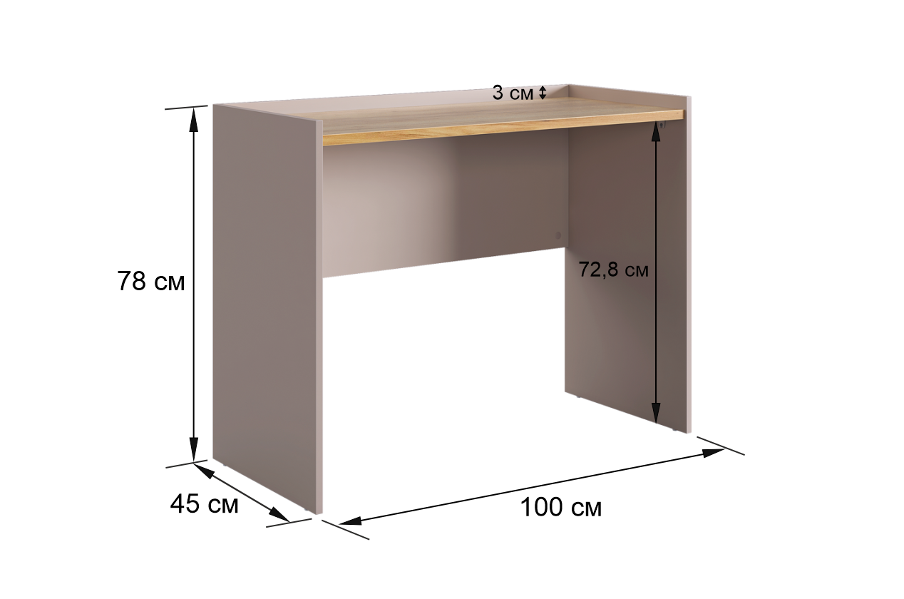 Корпус стола выполнен в цвете кашемир, что придает ему современный и спокойный вид, легко сочетающийся с любым интерьером. Столешница изготовлена из высококачественного материала цвета дуб крафт золотой с толщиной 22 мм, что обеспечивает прочность и устойчивость к повреждениям. Этот цвет добавляет столу теплоту и роскошь, создавая приятное ощущение при работе или учебе.