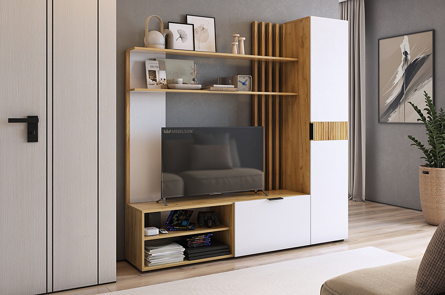 - Тумбы под ТВ и модульные системы — это современное и практичное решение для гостиной. Они позволяют эффективно использовать пространство и обеспечивают удобный доступ к мультимедийным устройствам и другой технике.