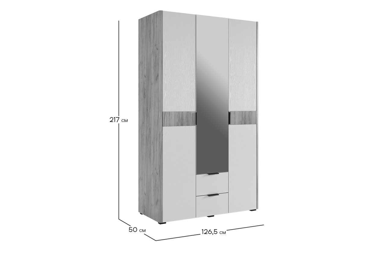 Адам Шкаф трехдверный (зеркало) дуб крафт золотой/белое дерево из каталога Шкафы купить в Уфе в магазине мебели онлайн Мебельсон по цене 42 290 ₽