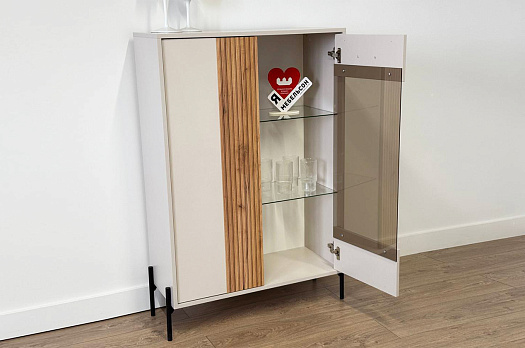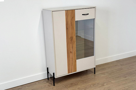 Доминика Комод (со стеклом) кашемир/дуб крафт золотой из каталога Комоды купить в Уфе в магазине мебели онлайн Мебельсон по цене 14 090 ₽