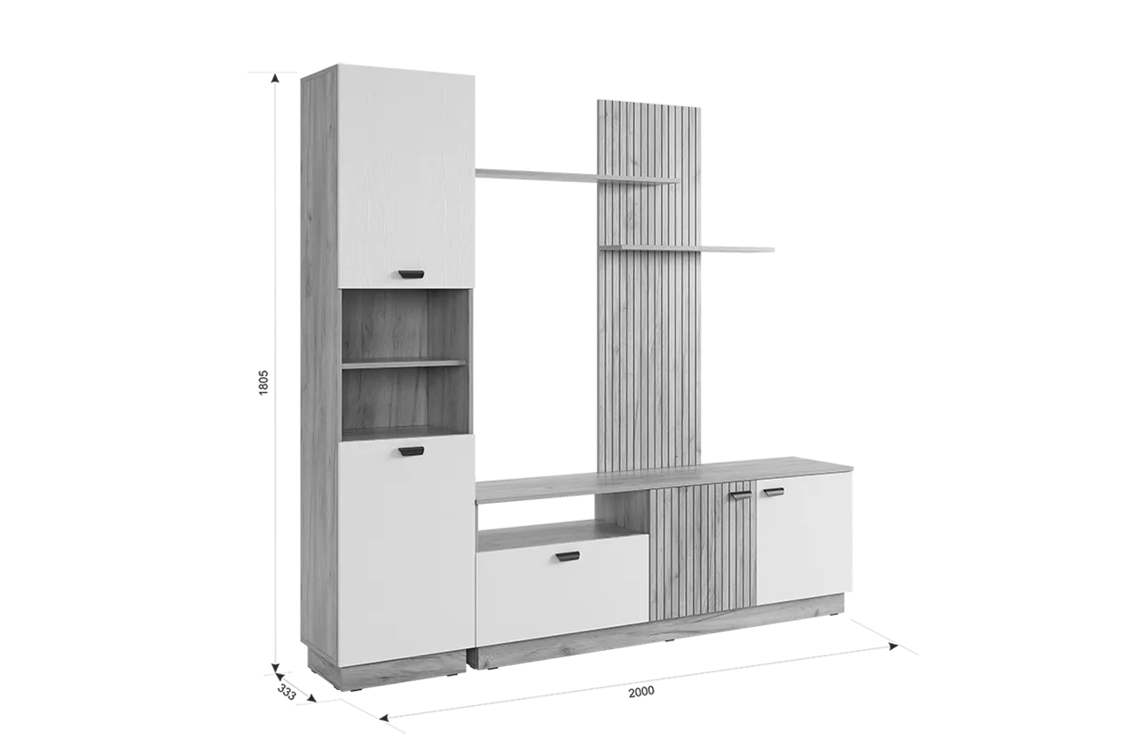Гостиная "Моди К1" дуб крафт золотой/белое дерево из каталога Модульные гостиные купить в Уфе в магазине мебели онлайн Мебельсон по цене 23 870 ₽