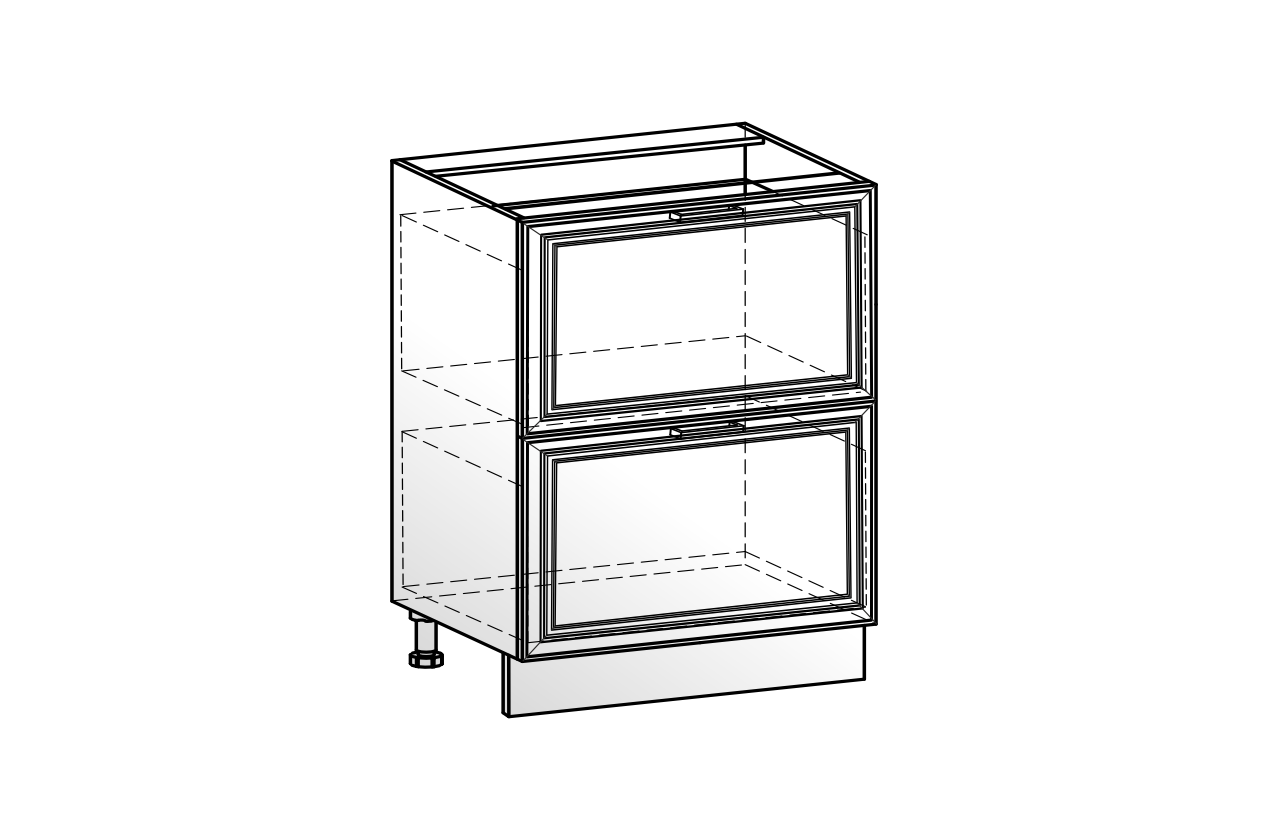 Состоит из:  шкаф рабочий с 2-мя выкатными ящиками с системой выдвижения СТАРТ - безшумное открывание.