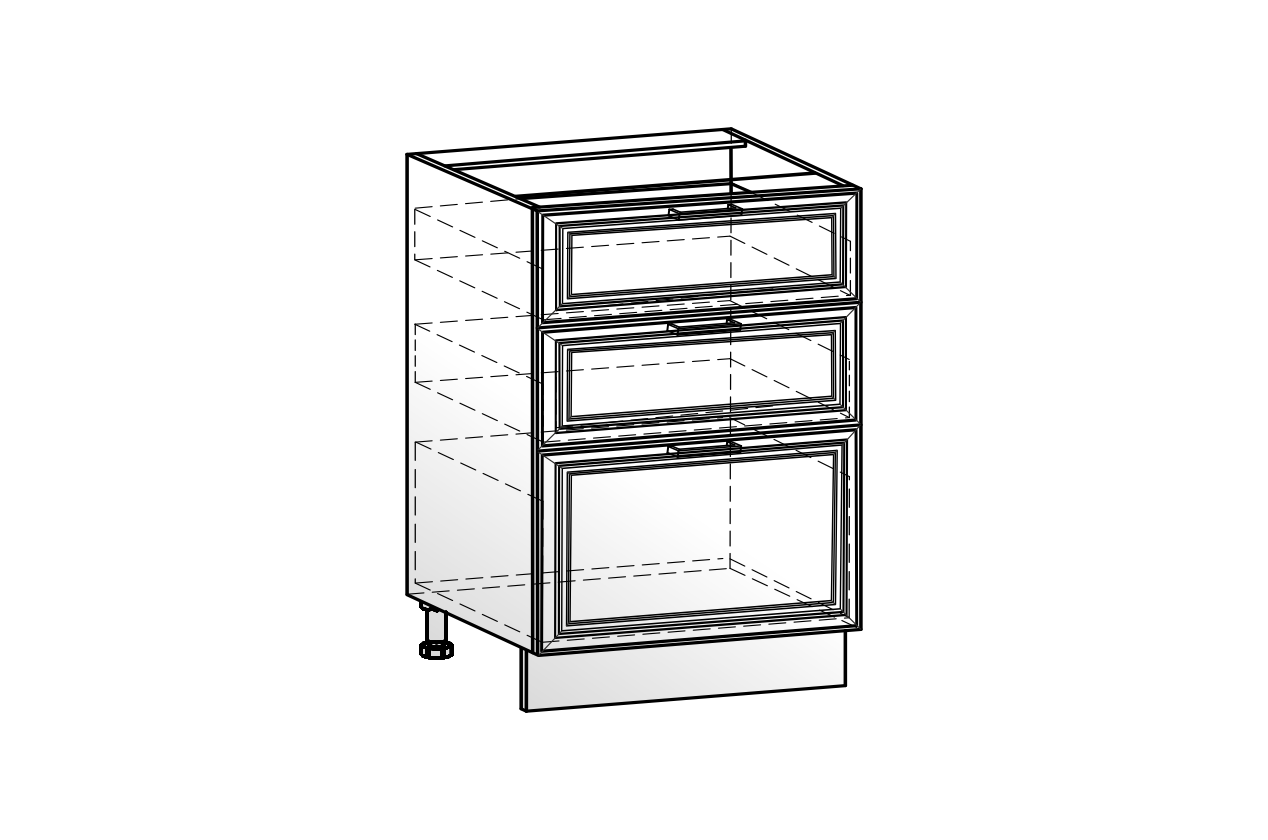 Состоит из:  шкаф рабочий с 3-мя выкатными ящиками с системой выдвижения СТАРТ - безшумное открывание.