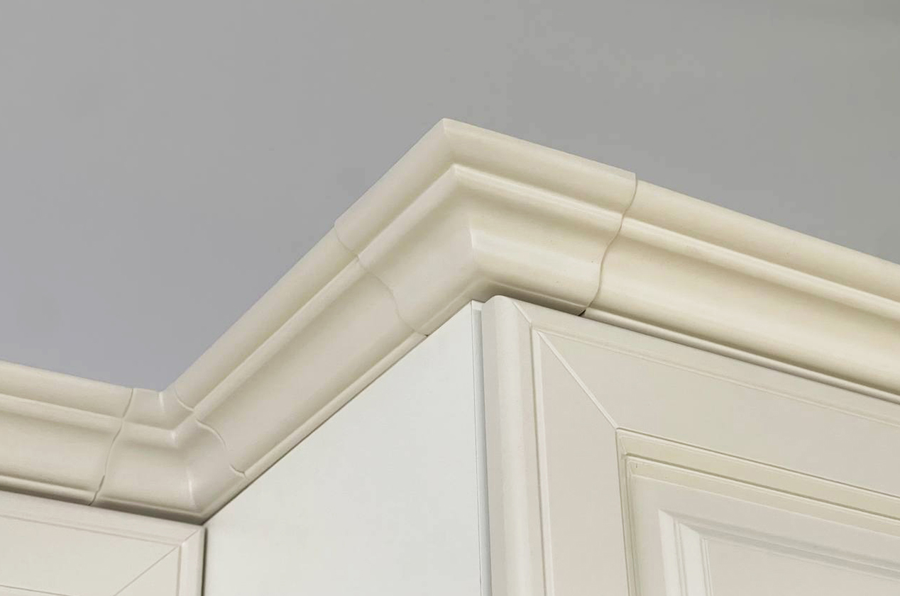 Элемент карниза концевой внутренний 90 градусов из серии «Мишель» предназначен для стыковки прямого карниза на шкафу навесном, для стыковки внутреннего угла.