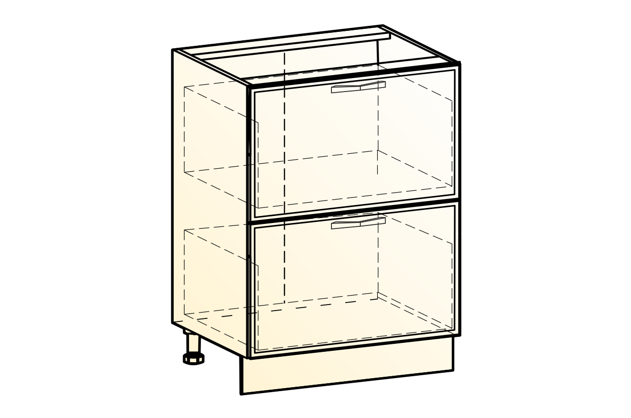 Состоит из: шкаф рабочий с 2-мя выкатными ящиками с системой выдвижения СТАРТ - безшумное открывание.