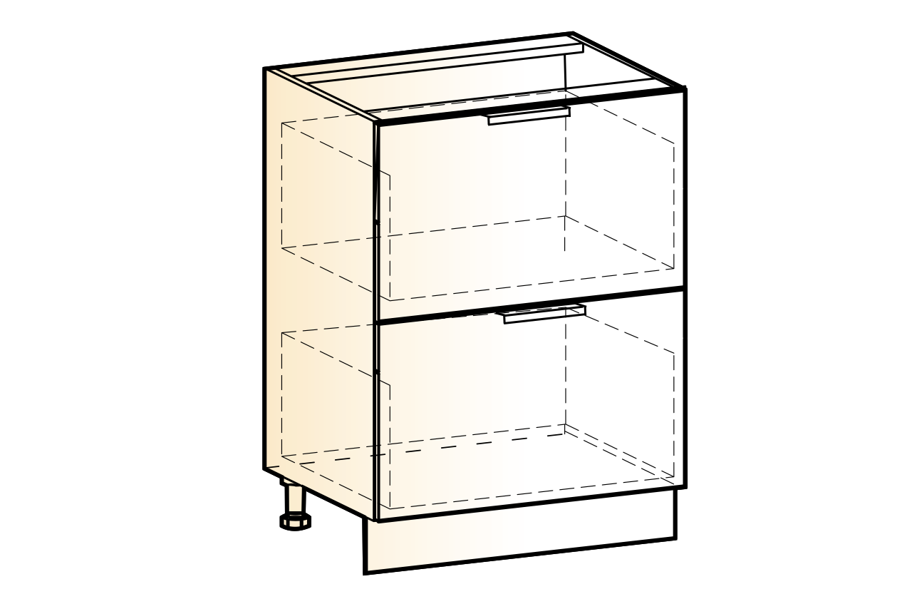 Состоит из:  шкаф рабочий с 2-мя выкатными ящиками с системой выдвижения СТАРТ - безшумное открывание.