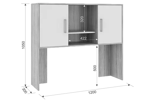Лайт-2 Надстройка стола компьютерного 1200 (белый/белый) 1шт.